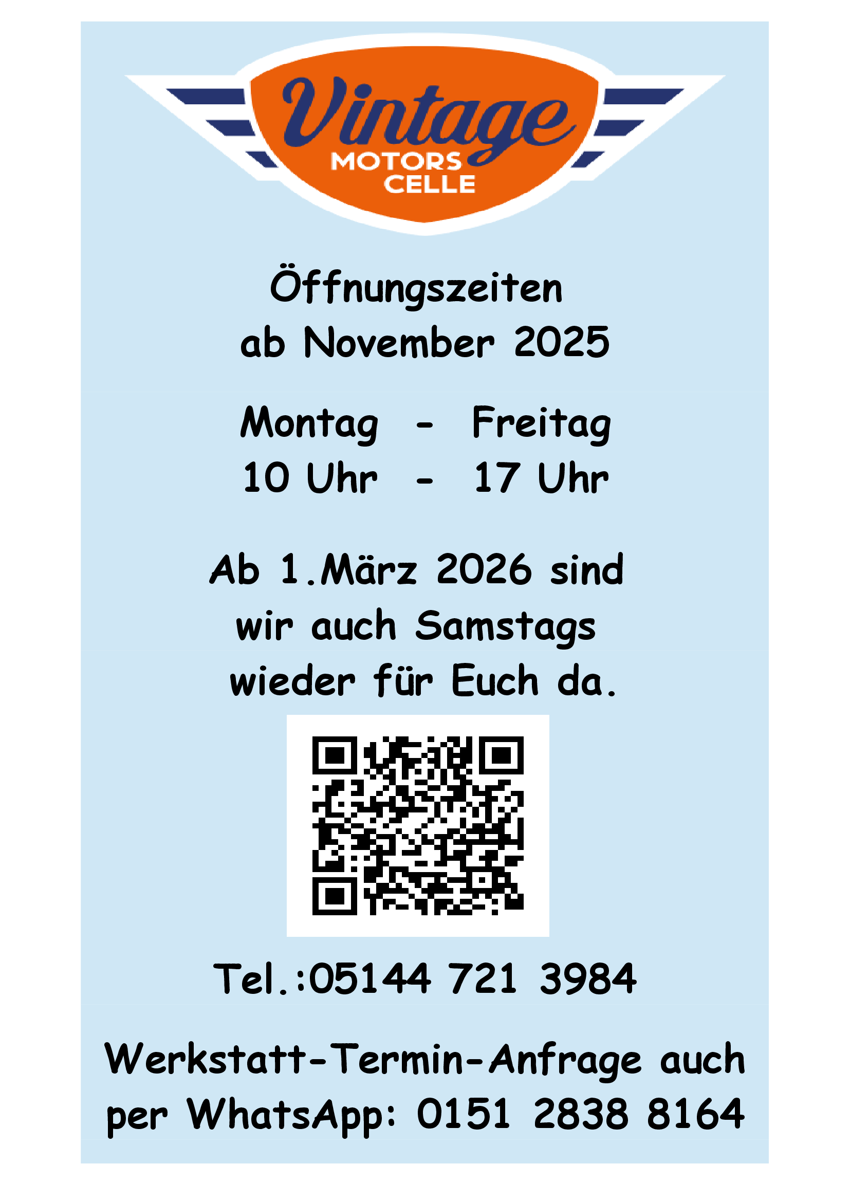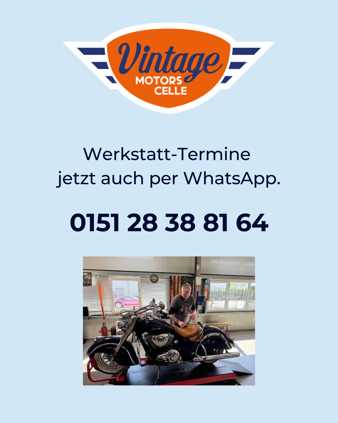Ab sofort könnt Ihr eure Werkstatttermine ganz bequem über WhatsApp vereinbaren. Schreibt uns einfach unter 0151 28 38 81 64...